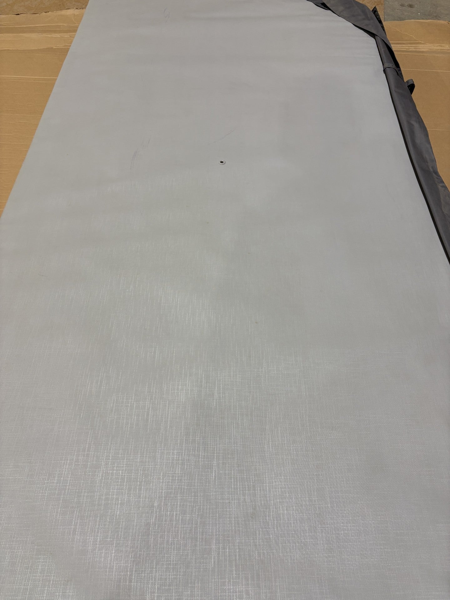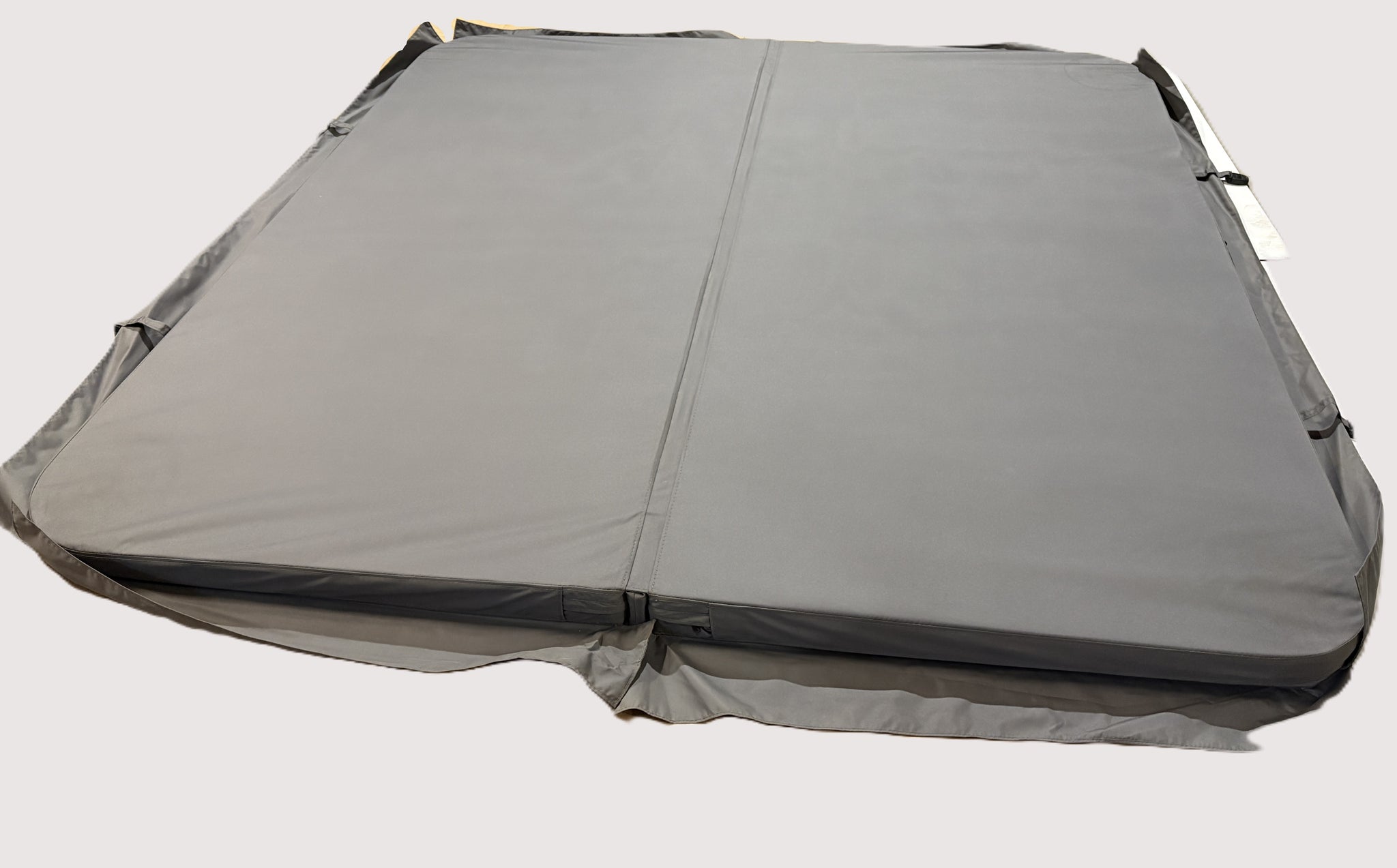 This spa cover has a 8.5" radius, 7" skirt and is the colour pewter. This cover has minor wear, there are a couple of circular rings on the outer corners, and is a bit dirty, as shown in the photos.