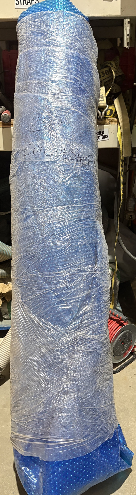 This is a 24', 7mm solar blanket. It's packaging has been removed and it's been rewrapped. It has an area for steps cut out of it.
