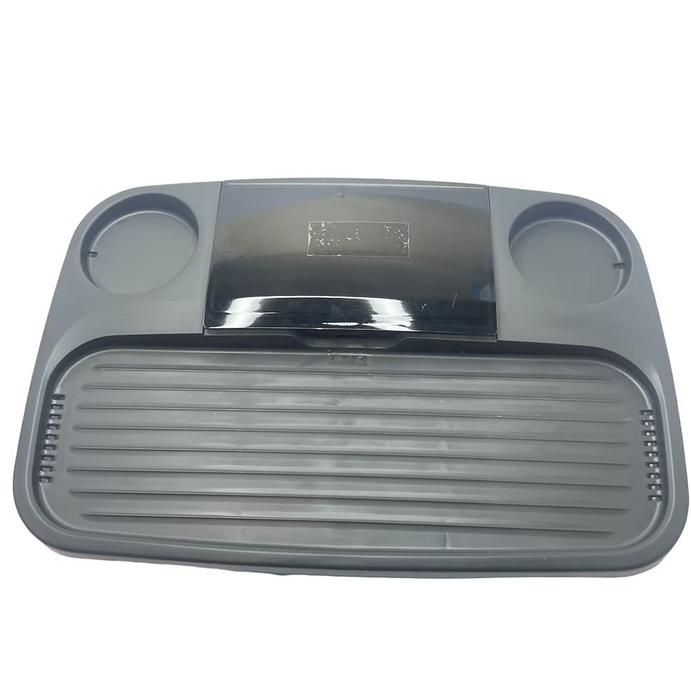 Secure and versatile tray table with two cup holders, anti-slip (grooved) shelf and special waterproof section to stow items like cell phones. Open up the lid and use for a book or tablet stand. Fits most spa and hot tub walls.