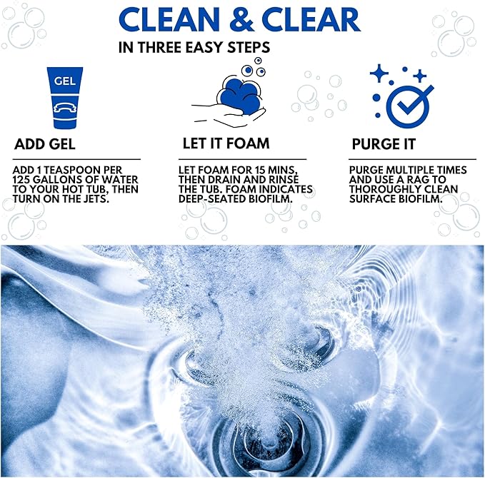 • SEPTIC SYSTEM SAFE: Gently chemically scrubs inside your plumbing & jets that helps remove Non-Public Health Biofilms and Slime-Forming Microorganisms, sludge, gunk, grime and dirt after just one cleaning. Increases the jet pressure since the plumbing is cleaned of flow-restrictive particulates. Filters and cartridges will last longer and remain cleaner, providing longer filter cycles before cleaning is necessary.