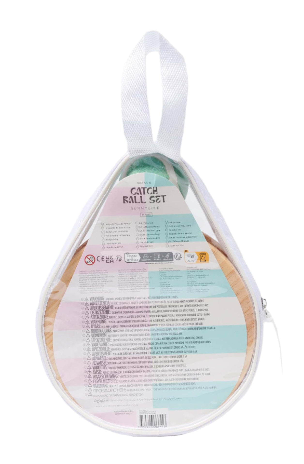 - Get ready to play away the day in style. The Pastel Lilac And Aqua Catch Ball Set is ultra-trendy and vibrant, designed to make a statement. Made from durable and lightweight material and comes complete with two velcro wooden mitts, one branded SUNNYLiFE ball and a handy carry bag, grab a partner, hit the seaside and serve up some serious fun. Turn heads and ensure this season is one to remember with their sweet pastel colorway.